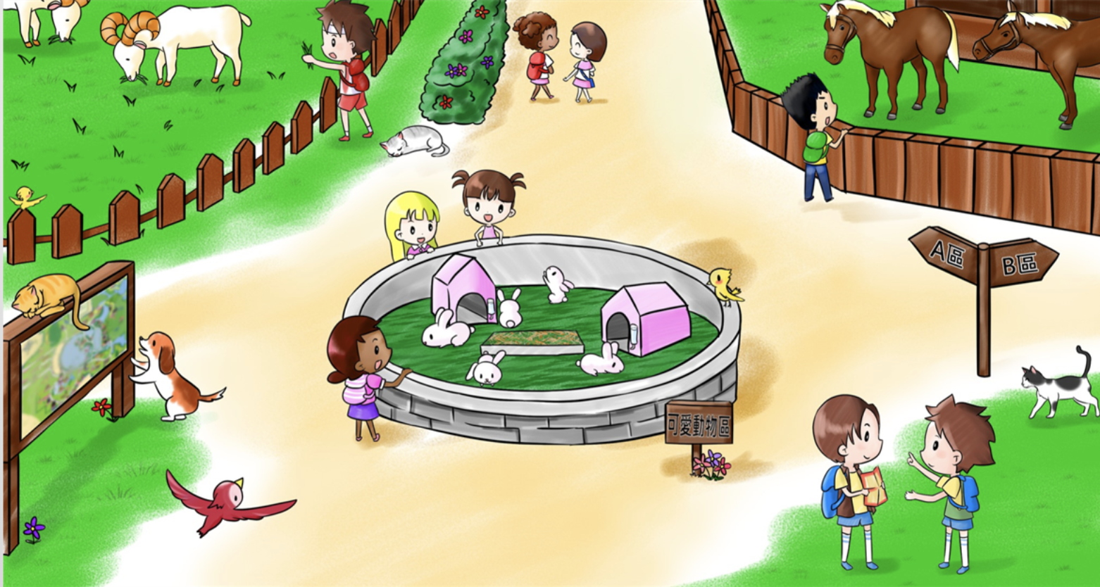 After completing Level 1 and learning 52 Chinese characters, this level takes the learners out into nature to chase after birds in the sky and dogs in the grass fields!