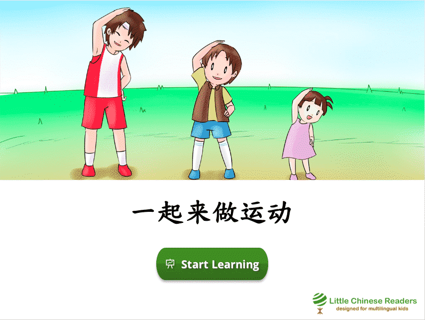Each lesson starts with a vocabulary module so we learn new words via a book-like fun reading exercise, complete with sounds clips, cute pictures, English translation, and pinyin/zhuyin assistance (wherever you need it). Let’s learn! New Vocabulary: 運、要、做、從、跳 New Vocabulary: 运、要、做、从、跳