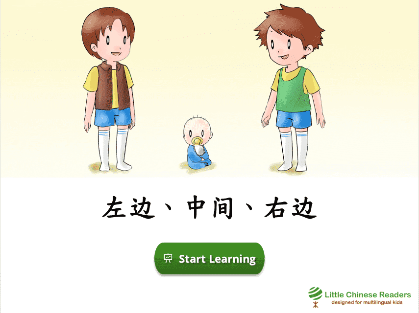 Each lesson starts with a vocabulary module so we learn new words via a book-like fun reading exercise, complete with sounds clips, cute pictures, English translation, and pinyin/zhuyin assistance (wherever you need it). Let’s learn! New Vocabulary: 邊、站、坐、間 New Vocabulary: 边、站、坐、间