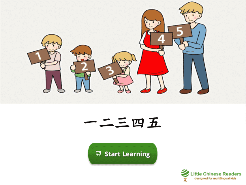 Each lesson starts with a vocabulary module so we learn new words via a book-like fun reading exercise, complete with sounds clips, cute pictures, English translation, and pinyin/zhuyin assistance (wherever you need it). Let’s learn! New Vocabulary: 二、三、四、五、兩、幾 New Vocabulary: 二、三、四、五、两、几