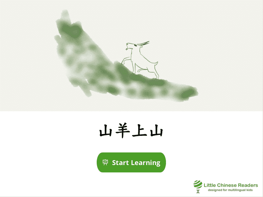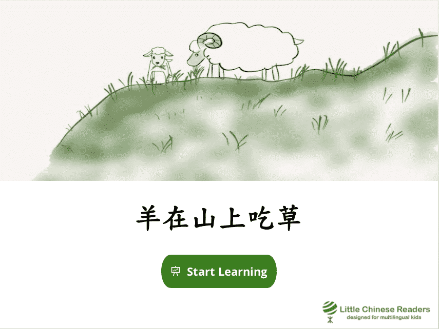 Each lesson starts with a vocabulary module so we learn new words via a book-like fun reading exercise, complete with sounds clips, cute pictures, English translation, and pinyin/zhuyin assistance (wherever you need it). Let’s learn! New Vocabulary: 山、羊、上、下、在 New Vocabulary: 山、羊、上、下、在
